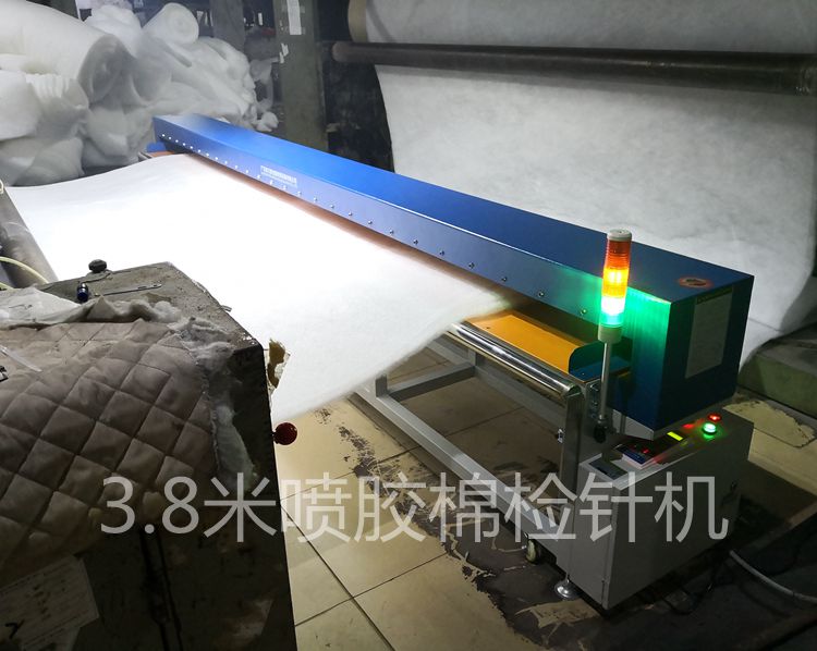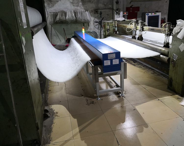 中某公司成立于1993年,公司的前名称叫做威某仿丝棉股份有限公司,现更名为中某仿丝棉有限公司,是一家专业的集团型棉制品港资公司从事这类产品已经有十几年的历史了,在此期间公司从产品的质量,客户服务,技术设备上都有了很大的改进,生产的喷胶棉全部采用进口的原料所做,因品质管控要求提高,淘汰了原来不合格的老款检针机,与连之新公司订购了最新款的JZQ-9006型数字式3.8米宽幅龙门式无传动检针机,用于检测其最大幅宽3.8米的喷胶棉制品,检测精度0.8mm,送货完美验收,客户满意。当天即找出几颗铁锈,为客户提升了产品质量和竞争力,也避免了不必要的罚款。
