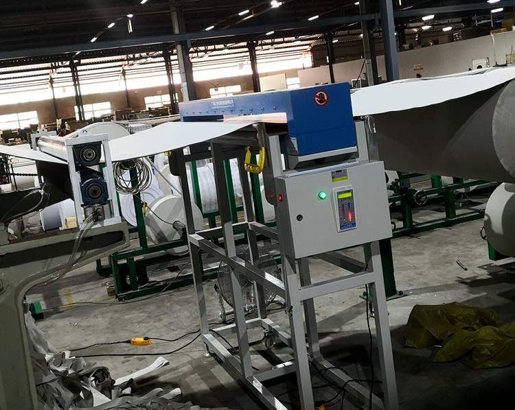 希某包装材料有限公司是一家港资跨国纸品包装生产供应商。常年为各大品牌鞋企提供鞋纸撑。因品质管控需要,新生产线采用连之新1.8米宽幅检针机配套在线使用。检测到金属异物的纸张切割下来再使用常规输送式检针机检测,确保纸品中不会混入金属异物。