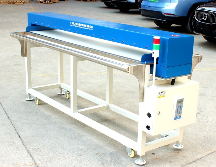厚毛料鞋材检针机使用要求能检测厚度超过5厘米的毛料,要求全方位检测1.0mm铁,检测到金属后报警输出停机信号,控制验布卷布机停止,并且以灯位指示形式通知工人金属异物所在位置,让工人及时查找到金属异物。