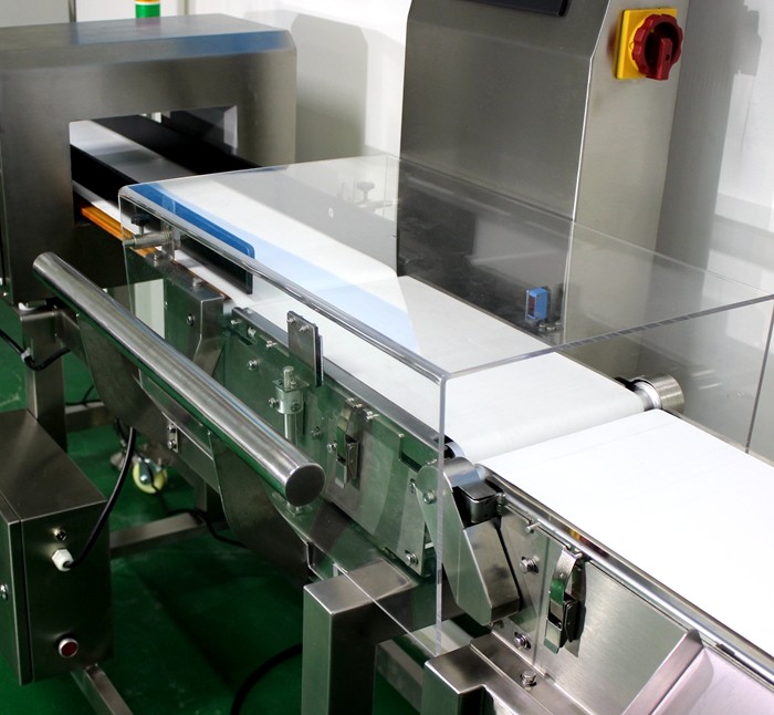 3、产品进入到金属和检重秤一体机的“剔除段”:剔除段检测到剔除延迟信号时,会适时做出剔除动作,准确将不合格的产品剔除。