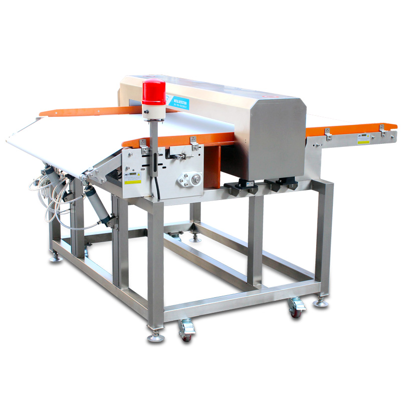 7.检测仪报警方式:检测到金属异物报警并下沉输送带分流剔除。
