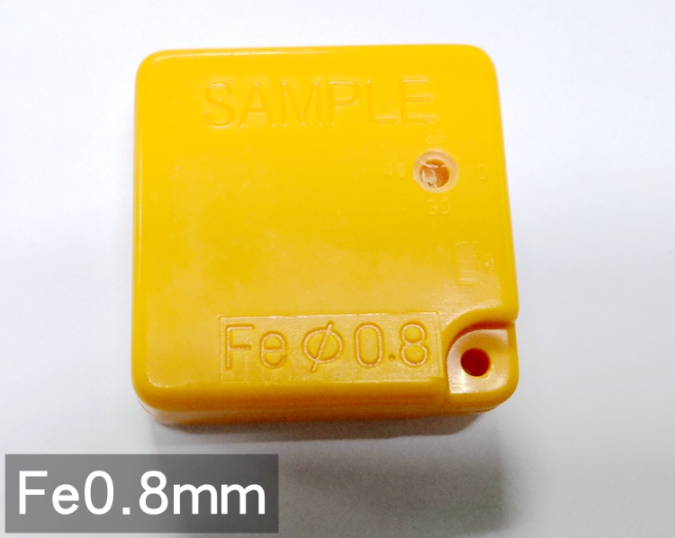 黄色检针机测试块。因检针机有B/C两种模式,有些用户会因为不懂得调试B.C模式,因此产生这种方块式的检针机测试块,这是在一个塑料盒上镶嵌了相应大小的金属球制作而成的检针机测试模块。对于检测高度10厘米以下的检针机,通过测试模块的高低摆放角度不同,也可以完成一些简单的检针机点检测试。当然,现在因为有了专业的检针机九点测试架和测试卡后,这种塑胶模块式的检针块已经逐渐不被日本人认可。但是因为使用便利性的原因,这个测试块还是可以用于日常监测检针机所使用的!