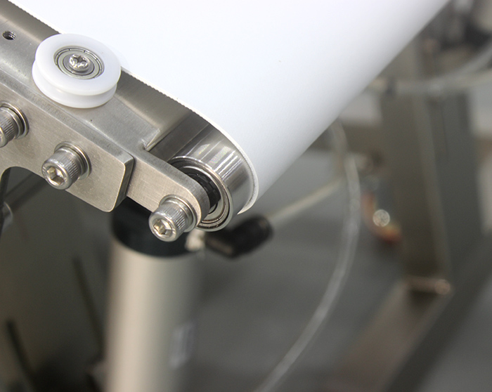 5.整机机架采用优质不锈钢材激光切割焊接技术及拉丝工艺制作,食品级白色PVC或PU皮带,日本品牌轴承及6厘厚304无缝钢管滚筒,采用日本三菱同步带及德资JSCC品牌电机。