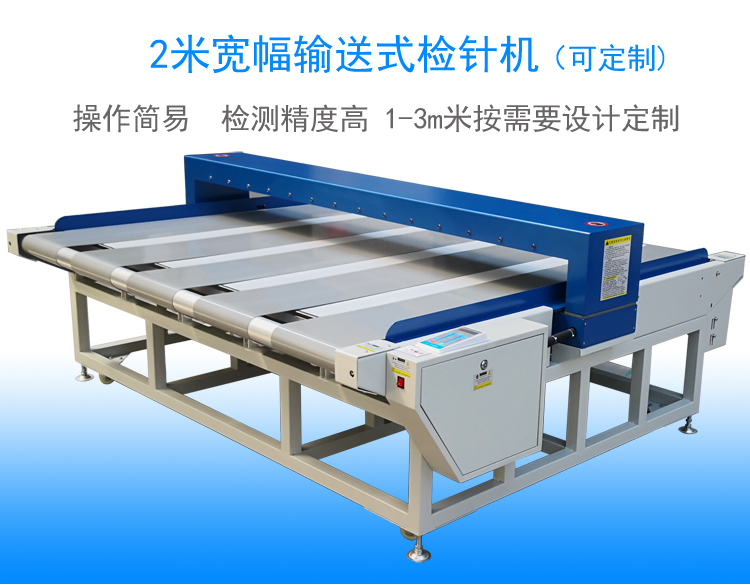 适用场所: 用于检测布料、无纺布、刺绣品、床单、被子、毛巾、浴巾、地毯、工艺品、纸板、木板等所有宽幅纺织品和片材中混入的断针、铁屑、铁丝、刀片、金属工具等金属异物。