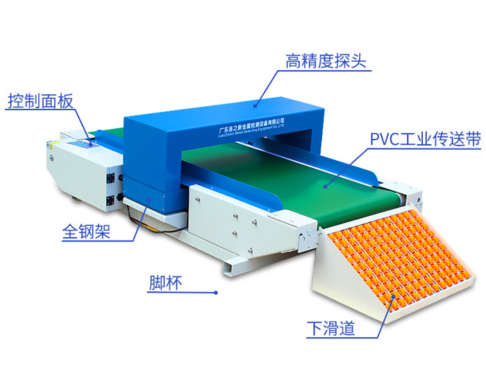 过检针:五金钮扣、五金拉链、日字扣、珠链、胸针等服装手袋金属辅料过检针机。
